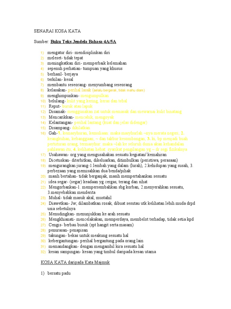 Istilah boleh berbentuk sebagai kata akar bebas kata berimbuhan kata gabungan atau kata gandaan. Sukatan Pelajaran Bahasa Melayu Sekolah Rendah telah memuatkan senarai kemahiran asas berbahasa dan tatabahasa yang perlu dikuasai oleh murid dari Tahun. MENANGGA KATA ARAHAN SOALAN JAWAPAN 7.